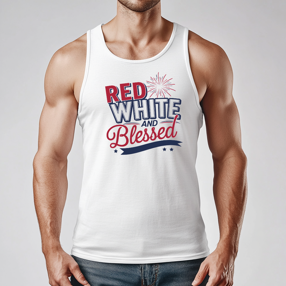Red White and Blessed Tank Top, Patriotic Christian Shirt, 4th of July Faith Tank, USA Freedom Tee, American Flag Shirt, Summer Tee from $30.99